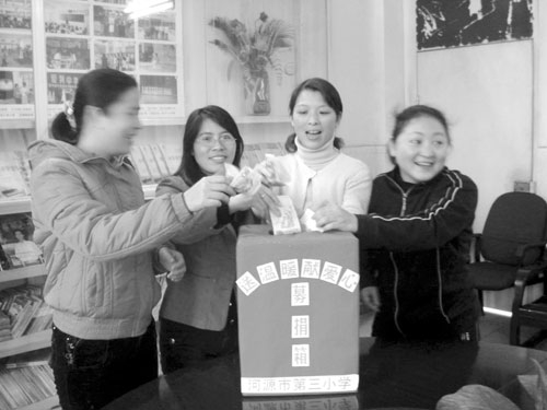 為響應市委市政府的號召,市三小近日舉行了“送溫暖、獻愛心”捐助活動。全校教職工踴躍為貧困災民和困難戶捐款。
