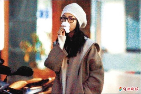 考完口試后,林依晨獨自下樓,在寒風細雨中四處張望,不時拿衛生紙擦鼻涕。