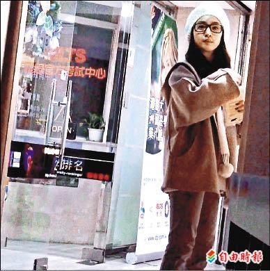 林依晨昨天下午到IELTS官方考試中心口試,考完后一臉輕松的準備搭電梯離開。