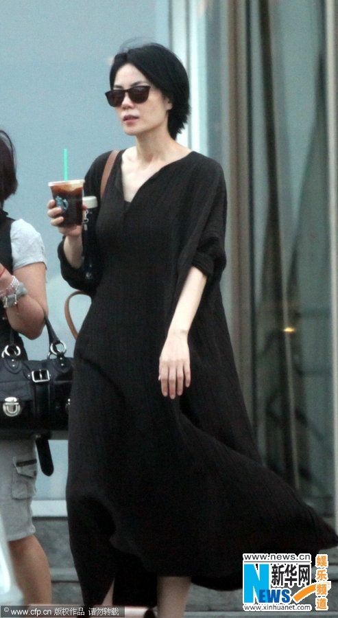 王菲“道袍”站街邊猛啜冰咖啡 手撐后腰挺肚子