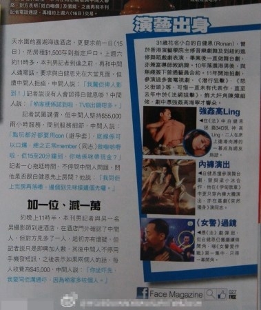 兩星期前,香港雜志《Face》編輯部收到讀者報(bào)料,有皮條客在同志聊天室高調(diào)招攬生意,并稱可與姓白的“港男”發(fā)生肉體關(guān)系,其聊天主題為“付三萬五港元起,可玩‘香港先生’”。