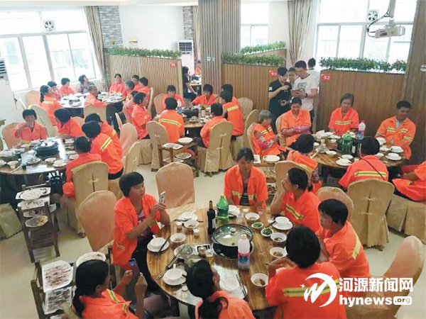 前日,和平縣東湖漁港酒家特地停業(yè)一天,老板葉國林免費(fèi)宴請和平縣城鎮(zhèn)環(huán)衛(wèi)所的160 位環(huán)衛(wèi)工人,與他們一起共進(jìn)午餐。葉國林表示,環(huán)衛(wèi)工人是城市“美容師”,在中秋佳節(jié)即將到來之際,他想用實(shí)際行動表達(dá)自己對環(huán)衛(wèi)工人的感謝。