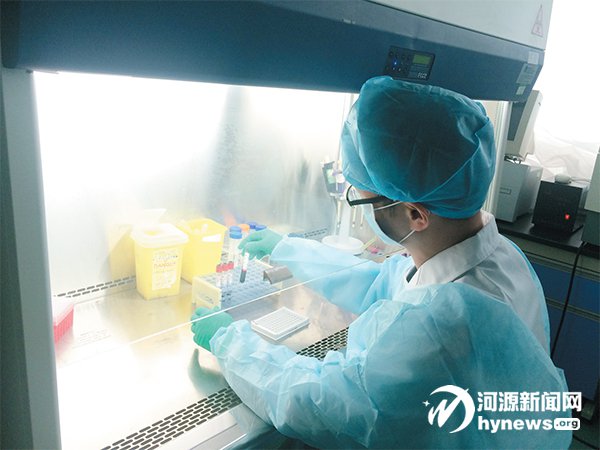 在市疾控中心艾滋病檢測確證實驗室,工作人員正在認真進行檢測。