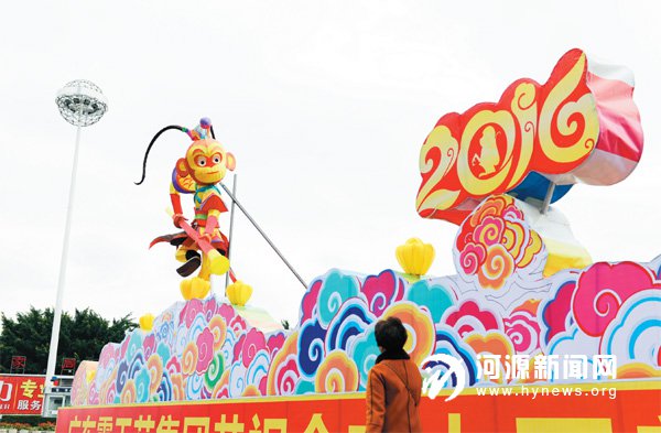 昨日,市區(qū)文化廣場、客家文化公園等地披上“猴裝”。據了解,今年的猴年主題花燈形式多樣,既有可愛的金絲猴拜年形象,也有齊天大圣揮舞金箍棒形象,美麗的花燈將河源節(jié)日氣氛裝扮得既紅火又喜慶,增添了濃郁的 “年味”,引來不少市民路過時駐足觀賞。