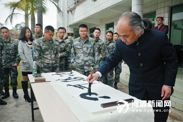 日前,源城區(qū)文廣新局來到河源風(fēng)光通訊連開展送文化進(jìn)軍營活動。官兵們首先觀看了提倡保護(hù)物質(zhì)文化遺產(chǎn)的公益微電影《家園》,之后,文化志愿者們?yōu)楣俦鴤儽硌菸湫g(shù)、跆拳道、歌曲及樂器演奏等文藝節(jié)目,還邀請了我市著名書法家現(xiàn)場揮毫。精彩紛呈的活動,為駐地官兵們送去了歡樂、送去了祝福,表達(dá)了軍愛民、民擁軍的真摯情懷。