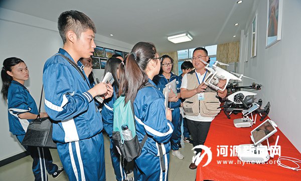 圖為航拍工作室人員向來訪的師生介紹無人機。