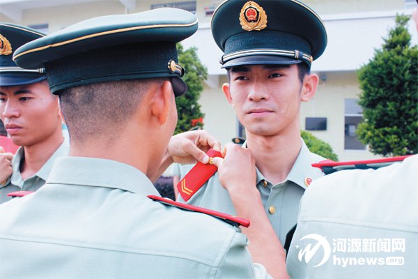 班長給退伍老兵卸去肩上的警銜。又到一年老兵退伍時,近日,武警河源市支隊一批滿服役期的老戰士,懷著對第二故鄉和警營的眷戀,依依惜別河源人民和部隊戰友,光榮退伍返鄉,走向人生的新征程。