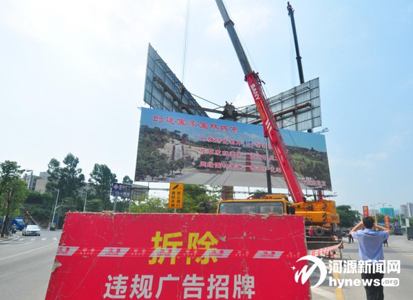 昨日上午,市城管局、市城監(jiān)大隊、市聯合執(zhí)法隊等來到新港路與黃子洞路口交會處,對一處立柱廣告牌進行拆除。據了解,為響應市委、市政府號召及配合我市“創(chuàng)文”、“創(chuàng)園”工作,市城管局、市城監(jiān)大隊、市聯合執(zhí)法隊在近期對市區(qū)范圍內不規(guī)范、未報批的立柱廣告牌、樓面廣告牌及懸空廣告牌進行清拆,還市民一個清爽視覺感受,提升我市城市形象。