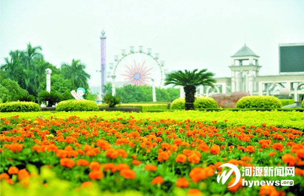 寬闊的沿江東路,路邊粉色、紅色、金黃色的花朵爭相競放,讓空氣都變得柔軟起來,路上的車輛放慢了速度,行人腳步不再匆匆,大家都被眼前美景吸引。為營造節日氛圍,今年國慶假期期間,市茶山公園、文化廣場、客家文化公園、沿江路、迎客大道等20處公園和重要道路節點種植時花約11.5萬株,除了市花勒杜鵑外,還包括有長春花、雞冠花、孔雀草、千日紅、夏堇等。圖為文化廣場門口綻放的孔雀草。