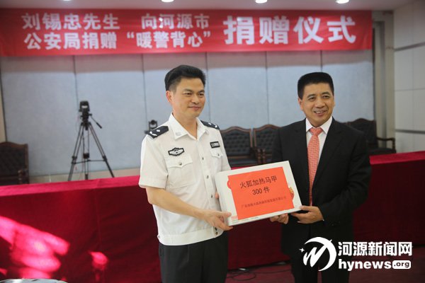 前日下午,省見義勇為基金會、省公安廳民警醫療救助基金會攜手廣東南極火狐熱碳科技發展有限公司在市公安局舉行捐贈儀式。副市長、市公安局長范秀燎指出,捐贈“暖警背心”充分體現了社會各界對公安機關的關注、支持與厚愛,河源公安機關將以更高的標準,更務實的舉措,更貼心的服務,來回應社會和群眾的新期待、新要求,努力打造更加和諧的警民關系。