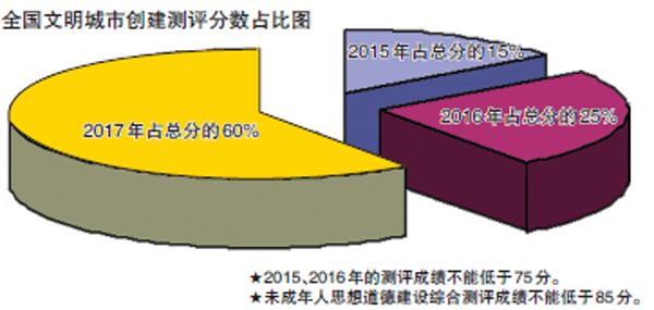 據悉,這一屆全國文明城市創建不搞平衡照顧、不搞名額指標分配,參與測評的100 個地級提名城市,按照三年測評綜合成績的高低進行排名,約前25 名的將評為全國文明城市。因此,今年的創文成績能否進入高分行列,將決定我市2017 年的參評資格,決定能否在2017年成功創建全國文明城市。