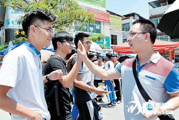 據服務隊隊長藍漢卡介紹,為了能幫助更多有需要的考生,他們安排了30余名志愿者,分布到兩個考點,穿上統一亮眼的志愿馬甲,讓有需要的考生能第一時間找到他們。