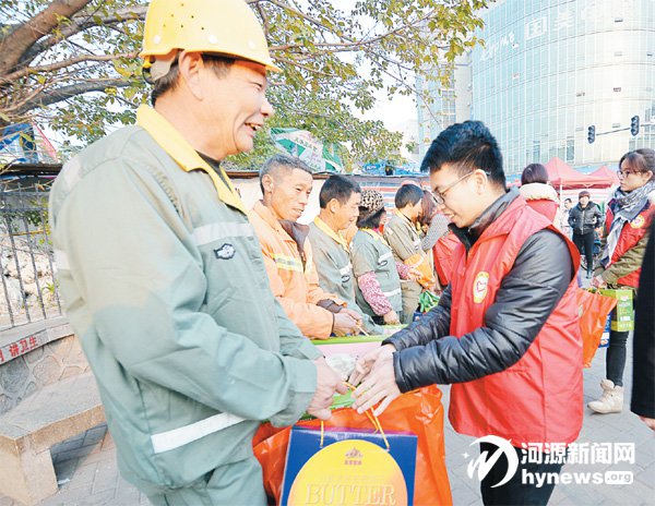 志愿者為源城區環衛工人送上慰問品,并幫助環衛工人清掃街道。今年,源城區將進一步擴大志愿者服務隊,確保全區志愿者人數達到常住人口的10%。(資料圖片)