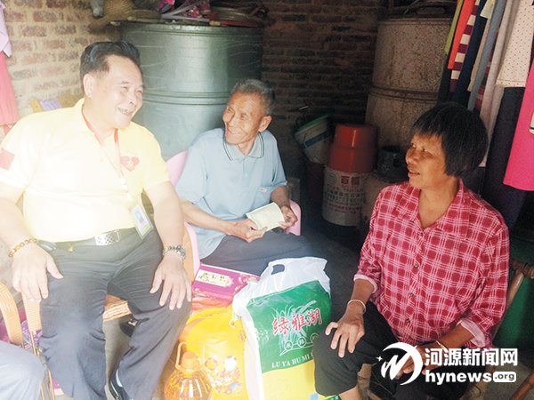 該村一間破舊的小瓦房,就是這對老夫妻的家。記者看到,他們的家中幾乎沒有像樣的家電,墻壁沒有刷石灰,地板潮濕。在一個小小的房子里,掛著夫妻倆為數不多的衣服,地上還有大米、花生油和米粉等,這些,還是 “河源市最美志愿者”李百初帶領的眾愛志愿者服務中心的志愿者送來的。