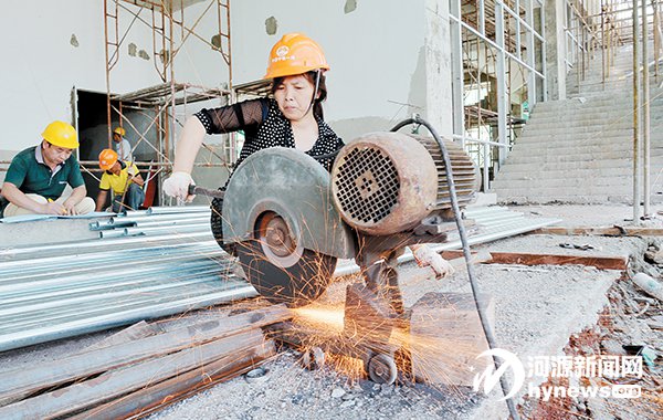 在她看來,男人能做的事情女人也一樣能做,她每天的工作就是負責工地消防材料的裁剪,切割材料、焊接鐵架等,雖然每天都伴著切割機刺耳的聲音工作,但是每當想到遠在老家讀大學的孩子,段美英夫婦都會覺得很值得。她說,她想守護著家庭和孩子,現在唯一的心愿就是希望讀大學的孩子認真念好大學,將來找份好的工作。