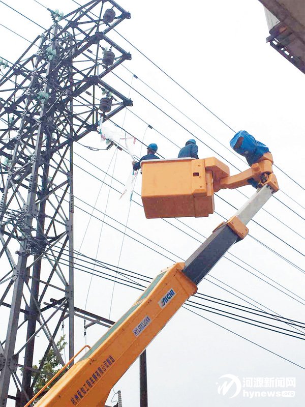 8 月2 日上午,東源供電局城鎮供電所工作人員帶電作業,在不停電的情況下清除10 千伏城北I 線漂浮物,為線路掃除隱患。