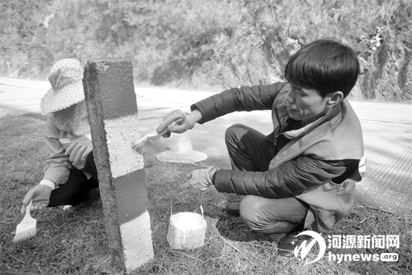 采訪當天,徐志勇與“戰友”們為路柱上新油漆。
