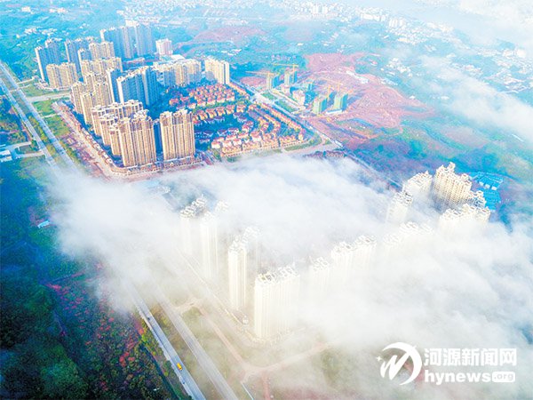 ▲云霧繚繞中的江東新區(qū)宛如仙境。