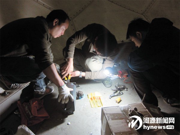 只要機器出現(xiàn)問題,不管什么時候,都要及時搶修,圖為夜間搶修。