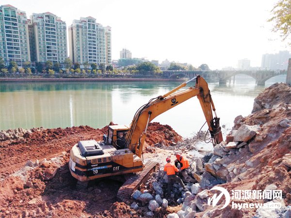 昨日下午,麗日小江橋(沿江路建設段)交通節點改造建設工地現場一派繁忙,4臺機械正在黃金水道旁邊緊張有序地施工。