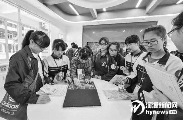 交流期間,他們還與雅居樂中學達成姐妹學校,就雙方在教育教學、師資力量、學校特色等方面進行互動交流,同時兩地學生達成一對一結對,相互交換禮物。圖為香港佛教孔仙洲紀念中學的師生走進雅居樂中學益智體驗室進行參觀體驗。