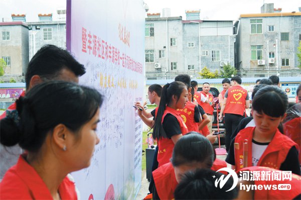 近日,為迎接我市即將到來的創(chuàng)文“大考”,源城區(qū)豐源社區(qū)舉行“群策群力創(chuàng)文明城市,同心同德建和諧社區(qū)”活動(dòng)。該社區(qū)居民群眾、豐源學(xué)校和豐源幼兒園的師生及家長共300余名志愿者參與了這次活動(dòng)。