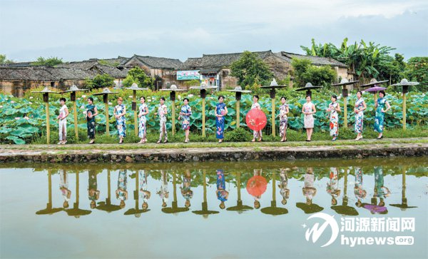 十多名客家女站在蘇家圍荷塘邊合影。昨日上午,首屆廣東東江國(guó)家濕地公園醉美荷花節(jié)在東源縣義合鎮(zhèn)蘇家圍風(fēng)景區(qū)內(nèi)舉行,吸引了一眾市區(qū)和外地的游客前來(lái)賞荷采風(fēng),現(xiàn)場(chǎng)有近50名攝影愛好者。據(jù)介紹,本次荷花節(jié)由廣東東江國(guó)家濕地公園和蘇家圍風(fēng)景區(qū)聯(lián)合主辦,旨在以荷為媒,展示濕地公園良好的自然生態(tài)和體現(xiàn)濕地人民保護(hù)生態(tài)、向往文明富裕生活的美好愿景。