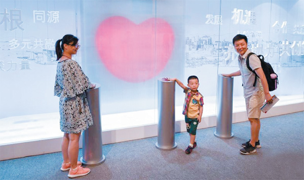 6 月27 日,為慶祝香港回歸祖國(guó)二十周年,香港特別行政區(qū)政府在北京中國(guó)國(guó)家博物館推出“香港回歸祖國(guó)二十周年——同心創(chuàng)前路掌握新機(jī)遇”成就展,展覽面向公眾免費(fèi)開放,并將持續(xù)到7 月16 日。圖為民眾在展廳入口的“同心圓”裝置前。