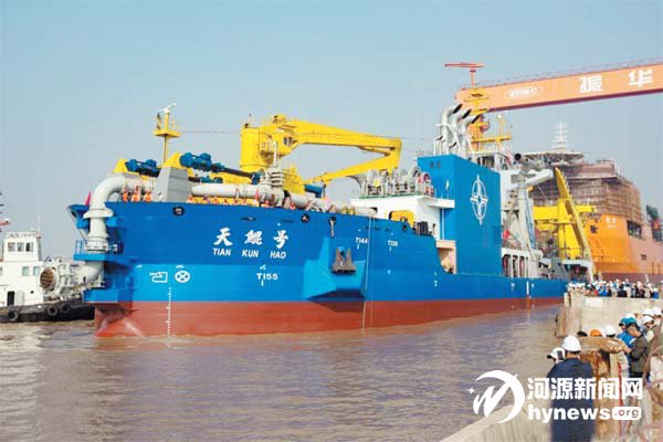 11月3日,長140米、寬27.8米的亞洲最大絞吸挖泥船“天鯤號”在江蘇啟東成功下水。該船最大挖深35米,總裝機功率25843千瓦,設計每小時挖泥6000立方米,絞刀功率6600千瓦,根據地質條件,配置通用、粘土、挖巖及重型挖巖4種不同類型的絞刀,可以開挖單側抗壓強度50兆帕以內的巖石。“天鯤號”的成功下水,標志著中國疏浚裝備研發建造能力進一步升級,處于世界先進水平。