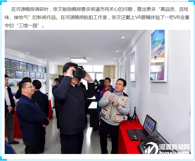今天上午,市委書記張文到河源日報社、河源廣播電視臺、河源晚報社,看望一線采編人員,調研我市新聞輿論工作。張文強調,新聞媒體要把習近平總書記對黨的新聞輿論工作的系列重要講話作為根本遵循,傳播河源好聲音,凝聚發展正能量,為河源決勝小康振興發展營造良好的輿論氛圍。