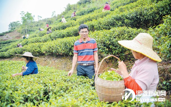 仙坑村駐村干部看望采茶的村民。本報記者 陳仕平 攝