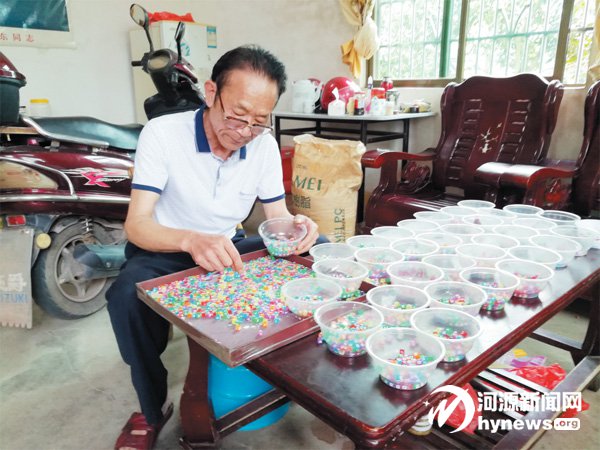 記者在江海添的家里見到了這位罹患腸癌9 年的老人,他正在仔細認真地分揀一些分別印有 26 個英文字母的彩色塑膠小正方體,這份簡單的手工活掙不了多少錢,但至少能為這個貧困至極的家庭減輕一點負擔。在患病的9 年里,江海添已經數不清自己住過多少次院、花了多少醫藥費了,即使如此,這位因病致貧的老人還是一直保持著樂觀、平靜的心態。江海添說,要感謝駐村工作隊一直以來對他的關心與幫助。據老人說,工作隊干部時常來探望、鼓勵他,給他留下足夠生活用的慰問金;在病發住院時,駐村工作隊干部主動籌集醫療費用幫他渡過難關;在參與了產業扶貧項目后,每年也有一筆穩定收入可以用作日常藥物治療。