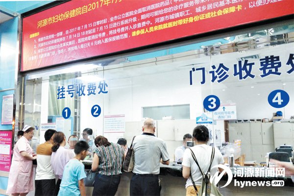 市婦幼保健院在掛號收費處上方宣傳我市城市公立醫院綜合改革。