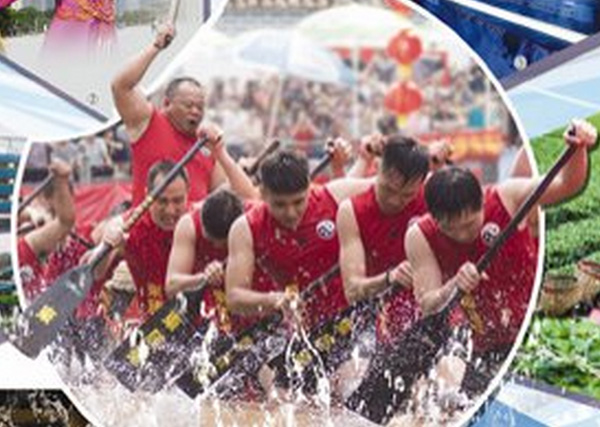 圖⑤:端午賽龍舟是廣東每年最熱鬧的民俗盛會(huì)。圖為佛山市南海區(qū)疊滘龍舟賽激烈上演。