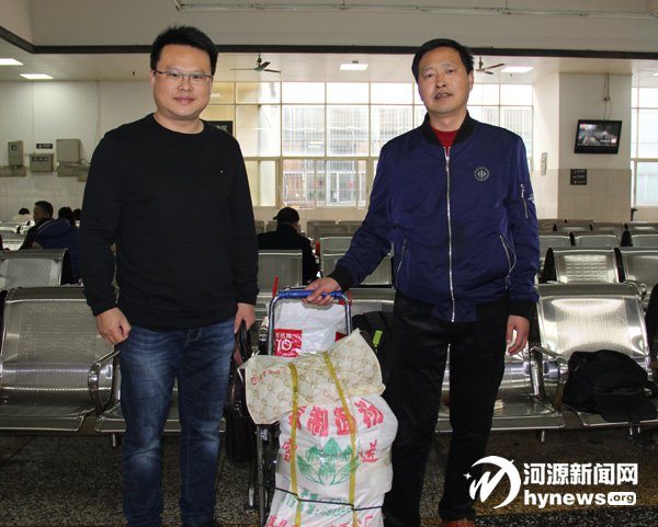 2 月5 日,河源火車站人頭攢動,有的人神色焦慮,有的人腳步匆匆,而有的人滿臉不舍。在候車室的人群里,有兩名男子提著大袋的行李,不時抬頭看看大廳的鐘表。記者上前攀談,他們禮貌性地露出了笑容。原來,兩名男子是兄弟,河南人,春節前,哥哥胡欣海來到河源探望弟弟胡金錄,這一天哥哥要返回老家了。