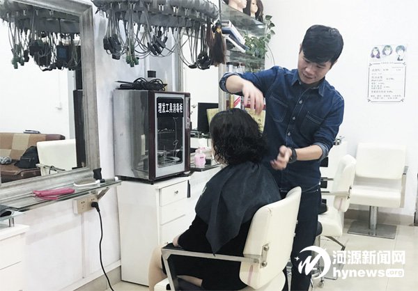 吳小強在為顧客理發
