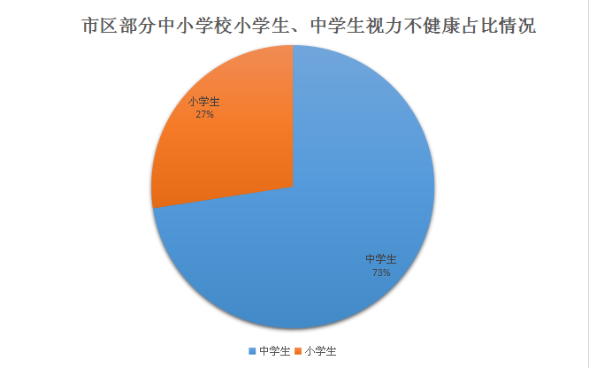 記者在視力檢測結果統計表上看到,除開色盲色弱、結膜炎和沙眼等疾病,檢查結果一般分為視力正常和視力不良兩種,而視力不良則又分為“4.6~4.9”和“4.5以下”兩個區間,視力檢測在 4.5 以下的已屬于深度近視。根據市教育局提供的報告,中學生視力不良的占視力不良總人數的 72.56%,小學生則占視力不良總人數的27.44%,可見在此次不完全統計中,中學生的近視率高于小學生。而值得注意的是,位于4.5 區間的人數在視力不良總人數中占比近50%。