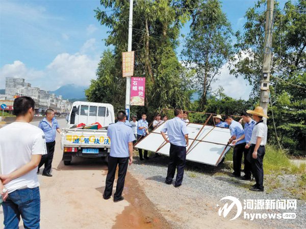 10 日,源南鎮突擊清理轄區殘損廣告牌、違規廣告牌13 個,在解決安全隱患的同時,也提高了市容市貌的整潔美觀。并出動挖掘機清理雙下路社區違規菜地和沿路雜草,整改面積1800 平方米,共清理建筑垃圾17 噸。