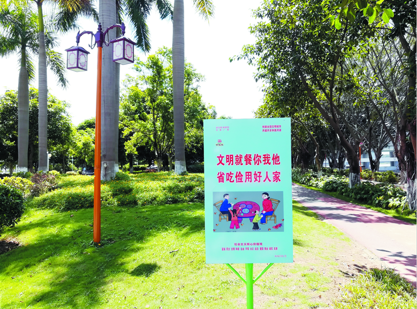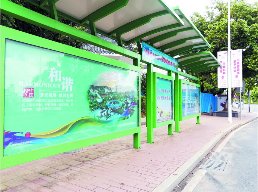 ▲在市區20 多個公園、廣場設 立公益廣告牌。