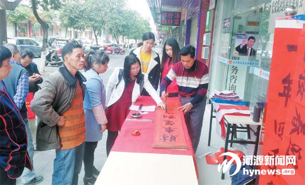 昨日,源城區(qū)長安街社區(qū)居委會(huì)舉行“我們的節(jié)日·春節(jié)——情暖社區(qū)”送春聯(lián)活動(dòng);顒(dòng)中,該社區(qū)熱 心居民、東源縣書法協(xié)會(huì)會(huì)員殷云祥為大家書寫春聯(lián),送上新春祝福。