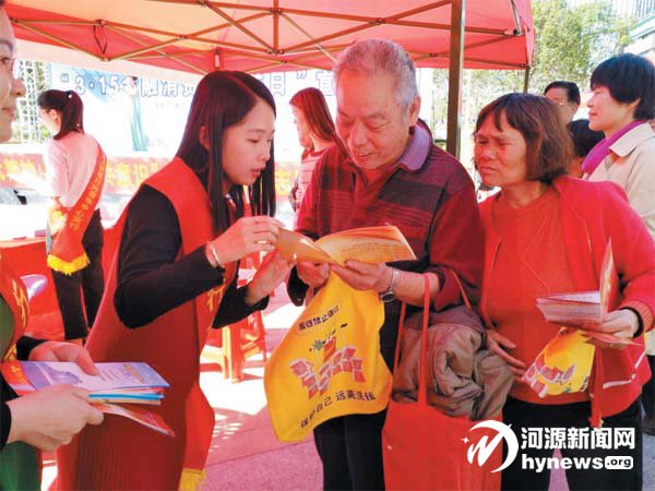 前日下午,人民銀行河源市中心支行聯(lián) 合河源市金融消費權(quán)益保護(hù)協(xié)會,組織轄區(qū) 32 家金融機(jī)構(gòu)在萬隆城商業(yè)廣場集中開展 以“保護(hù)金融消費合法權(quán)益構(gòu)建和諧金融 消費關(guān)系”“辨別非法金融廣告增強風(fēng)險責(zé) 任意識”為主題的“3·15”金融消費者權(quán)益 日現(xiàn)場咨詢宣傳活動。