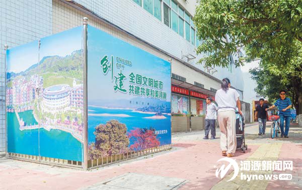 日前,記者在市區建設大道等主 干道看到,道路上的變壓電箱披上 了創文公益廣告的“新衣”。據源城 區創文辦負責人介紹,他們在市區 建設大道、中山大道和沿江路等主 干道上的80 個變壓電箱安裝了創文 公益廣告,旨在傳遞文明新風尚,營 造良好的創文氛圍,助推河源創建全 國文明城市。