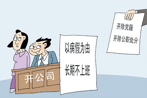 河南省商水縣委政法委副科級干部廉某某以病假為由長期不上班,單位領導多次找其談話,廉某某仍不以為然。2013年9月,廉某某以妻子為法人代表,在周口港區注冊成立了某精密滾動體有限公司,實際由其本人負責公司運轉。今年3月9日,商水縣紀委給予廉某某開除黨籍、開除公職處分。