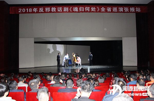 5月11日下午,由甘肅省話劇院創作的甘肅首部反邪教題材原創話劇《魂歸何處》在張掖市河西學院河西講堂展演。該話劇將反邪教宣傳與文化藝術相融合,讓觀眾身臨其境,與舞臺表演合二為一,引起共鳴。張掖市干部群眾及河西學院學生代表800多人觀看了演出。