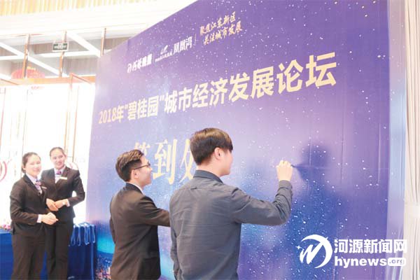 參加2018 年“碧桂園”城市經(jīng)濟(jì)發(fā)展論壇嘉賓簽到。