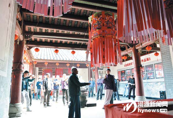 本次活動還設置了花燈觀 賞區和猜謎區。在祠堂邊的青 石道上,各式花燈已經掛滿了 道路兩旁,形成一條花燈街供 賓客觀賞。據悉,現場的傳統 花燈一共有13 個品種,80 多盞 花燈,全部都是由花燈師傅手 工制作,非常精美。此外,現場 還準備了100 多盞經過改良的 創意花燈,有龍燈、彩云燈、鳳 燈等各式品種。