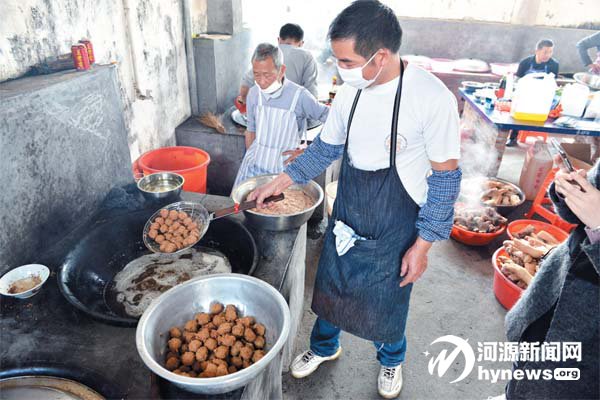 為迎接八方來客品嘗忠信客家美食,廚師正在制作極具當地特色的肉丸。