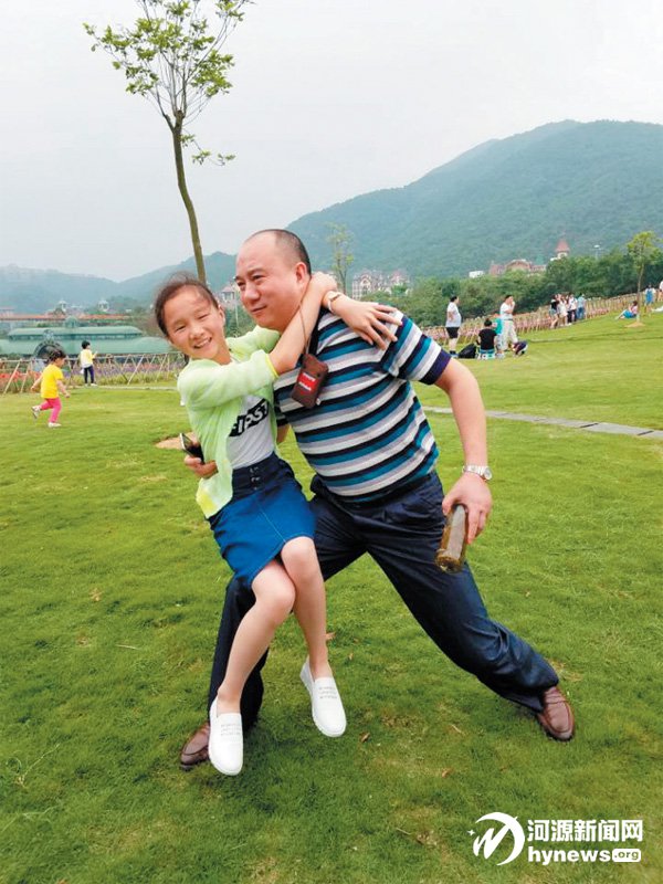 曾張粵湘給記者看了一張和父親曾立秋在深圳東部華僑城茶溪谷風(fēng)景區(qū)的合照,畫面中,爸爸曾立秋身體前傾、雙手?jǐn)[成超人的模樣,而曾張粵湘坐在爸爸的腿上摟著他的脖子,笑得十分開(kāi)心。