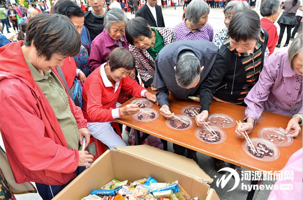 游園活動的內(nèi)容豐富、趣味性十足,而且簡單不費(fèi)力,完全是根據(jù)老年人的身體狀況來設(shè)計(jì)的。踢毽子、撿豆子、套圈、盲人打銅鑼、吹蠟燭、釣魚、踏轉(zhuǎn)前行、吹乒乓球、巧手夾球、丟地圈、投籃球……共計(jì)18個(gè)有獎(jiǎng)游戲項(xiàng)目受到了老人們的熱情歡迎,大家在游戲項(xiàng)目點(diǎn)前排起了長龍,玩得不亦樂乎,歡聲笑語久久回蕩。