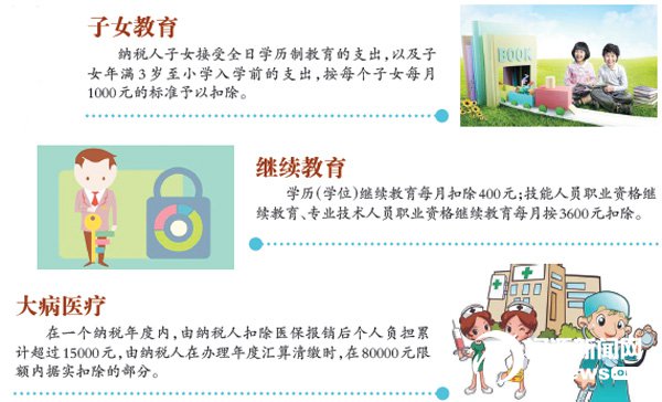 首次增加子女教育、繼續教育、大病醫療、住房貸款利息或住房租金、贍養老人等6項專項附加扣除
